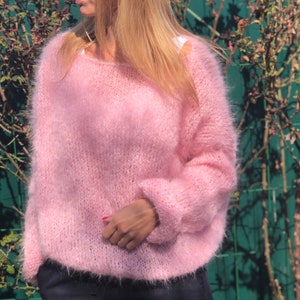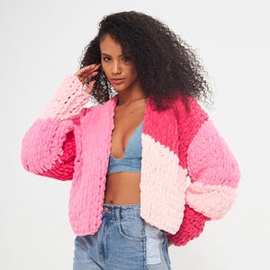 Colorful Alpaca Knit Sweater: Handmade Pink Oversized Pullover for Colorful Wardrobe Lovers